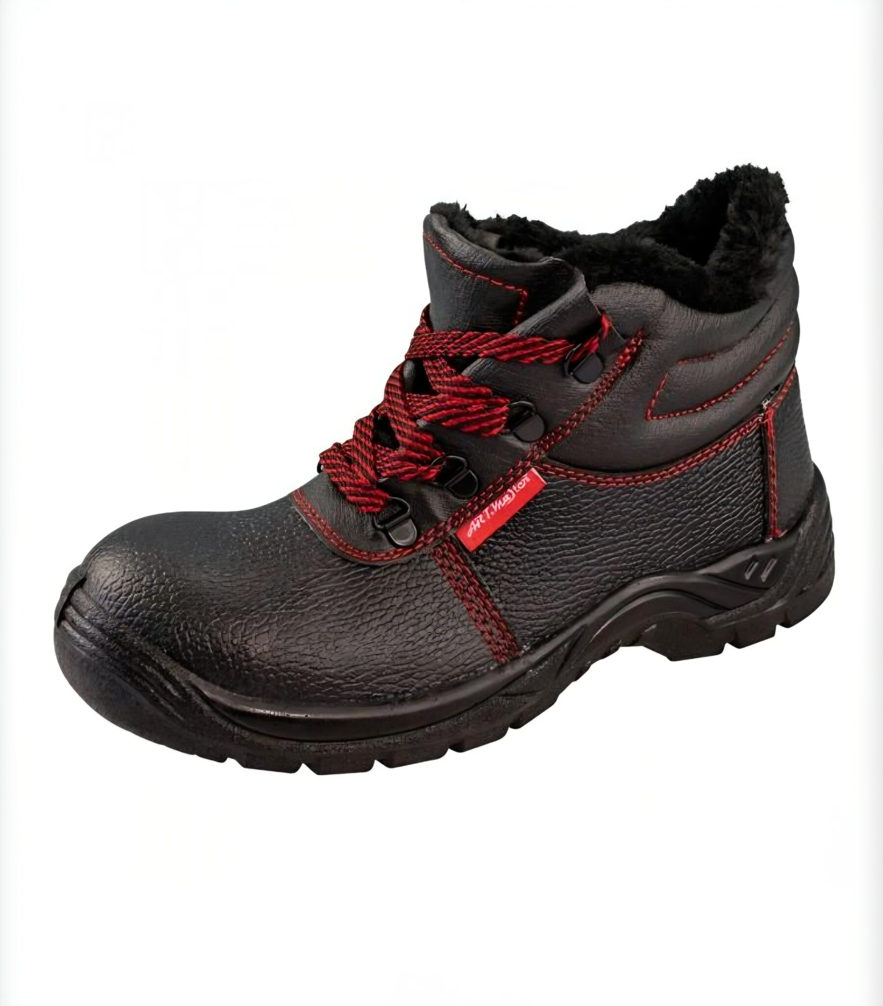 Vysoký zvršok z reliéfnej prírodnej kože. Dvojvrstvová podrážka PU. PU s diferencovanou hustotou, montovaná priamym vstrekovaním, odolná voči oleju, benzínu a iným organickým rozpúšťadlám, protišmyková, tlmič energie v päte.
